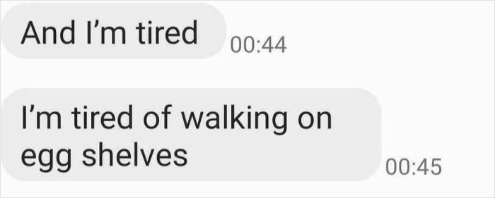 15, I’m Tired Of Walking On Egg Shelves