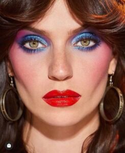 The retro look can be reproduced in modern times by scooping a colourful blush and applying it gently around the cheekbones. The technique represents the playfulness of 80s Makeup but the finish is more sophisticated and up-to-date.