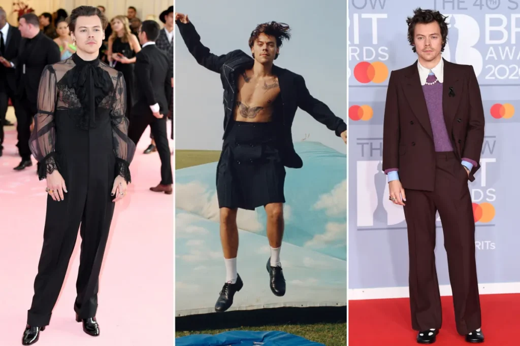 Harry Styles is the one who is famous in breaking fashion limits. His clothing tends to have a vintage influence with a contemporary tailoring, and he does not fear the bright colors, prints, or generally feminine features.